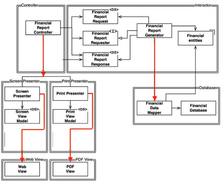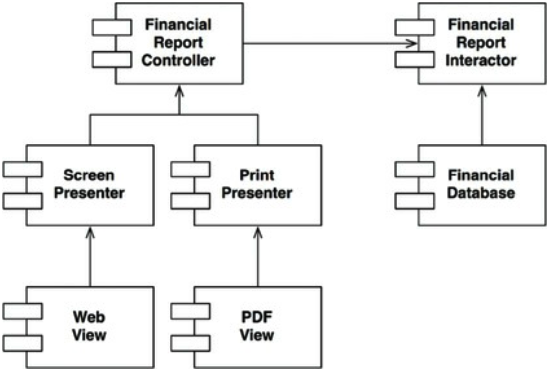 FinancialDataGateway 인터페이스가 없었다면, Interactor가 Database에 바로 의존하게 된다. 마찬가지로 FinancialReportPresenter 인터페이스 2개와 View 인터페이스도 같은 목적을 지닌다.