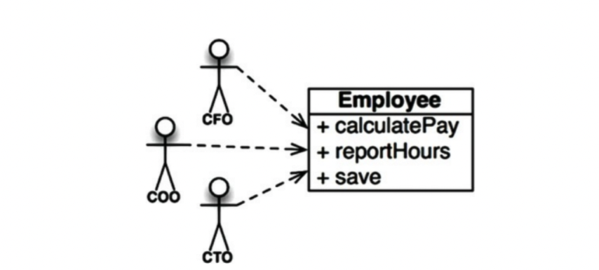 단일 Employee 클래스에 이미 세 액터가 결합이 되었다. 이 결합으로 인해 각 액터의 결정 조치가 다른 팀에서 의존하는 것에 영향을 줄 수 있다.